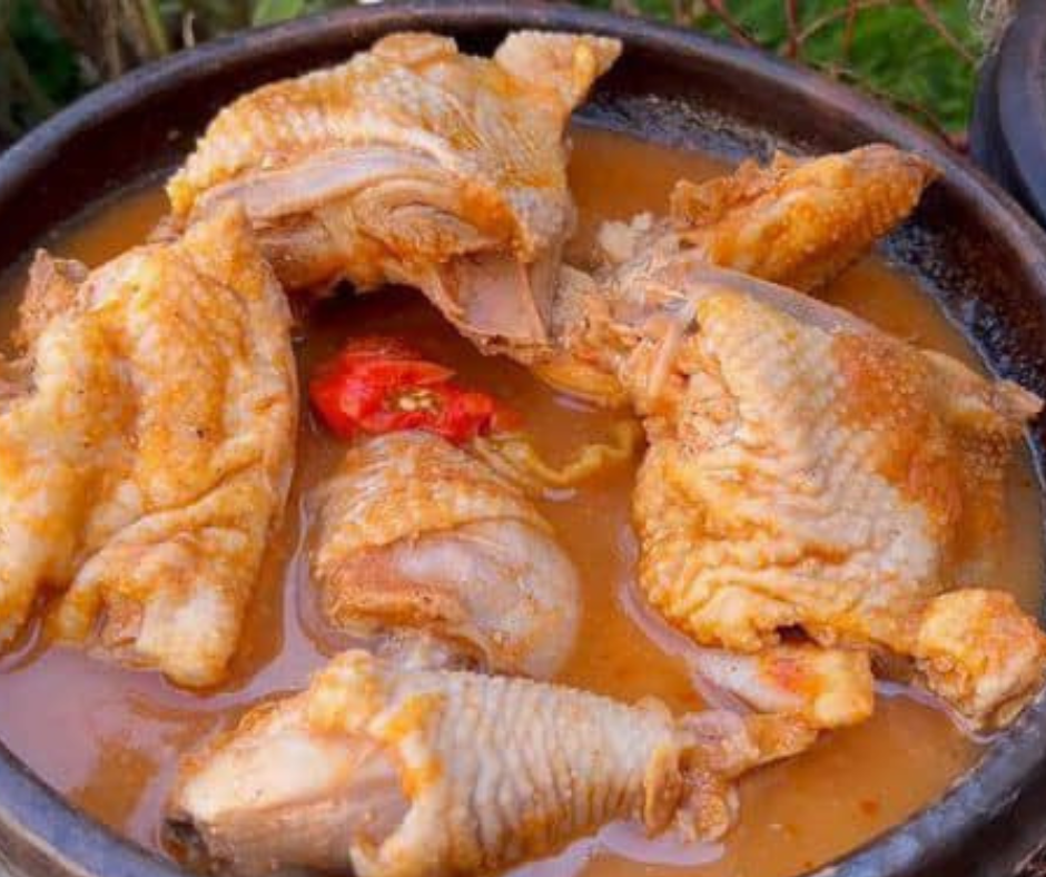 Kedjenou de poulet is a traditional Ivorian chicken stew that is slow-cooked in its own juices with vegetables and aromatics in a sealed clay pot called a "canari". The name "kedjenou" comes from the Baoulé language, meaning "to shake," which refers to the practice of vigorously shaking the sealed pot to prevent the food from sticking to the bottom without opening it. The resulting dish is a flavorful, tender stew often served with attiéké (a cassava-based side dish) or rice.