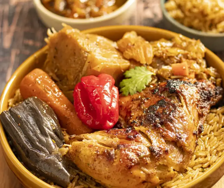 Thiebou Guinar (or Thiebou Chicken) is a variation of the popular Senegalese dish Thieboudienne (rice and fish), using chicken instead of fish. It is a flavorful, complete meal featuring rice, chicken, and various vegetables cooked together.