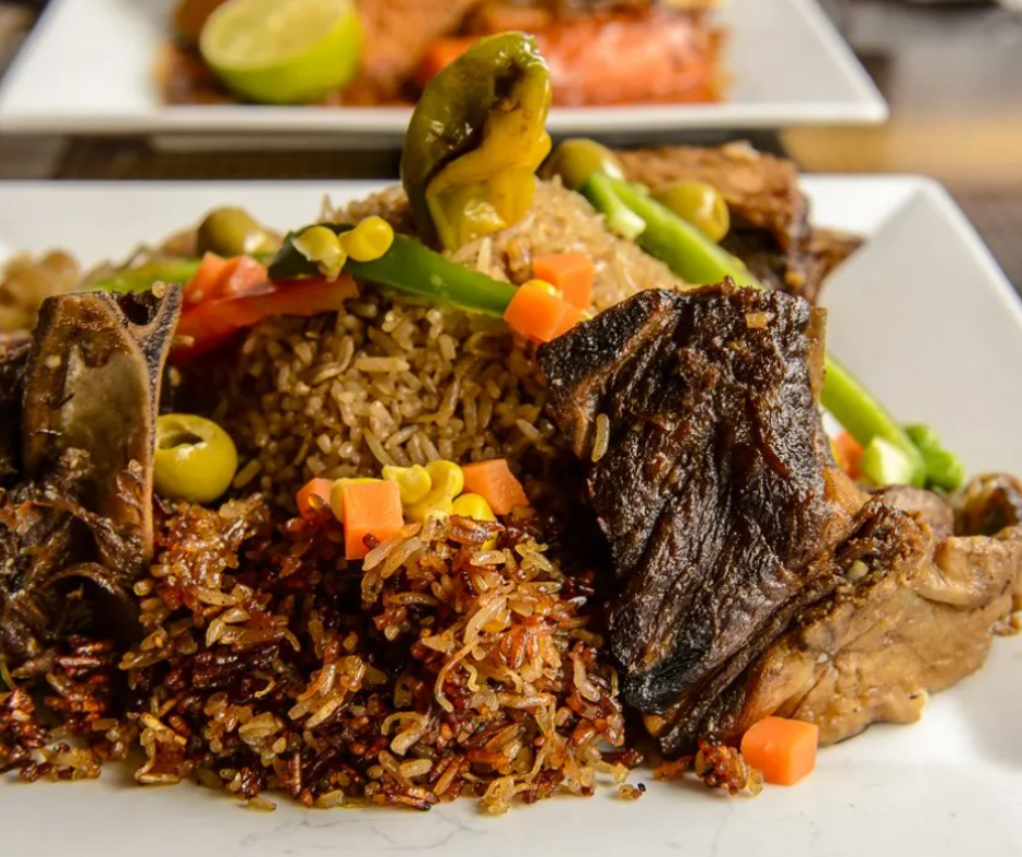 Thiebou (rice) and yapp (meat) is a traditional and hearty Senegalese one-pot dish of jollof rice cooked with tender lamb and a flavorful vegetable sauce. The name itself comes from the Wolof words thieb (rice) and yapp (meat), with lamb specifying the type of meat used.
