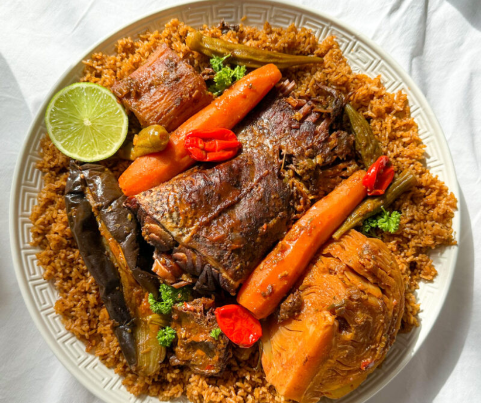 Thieboudienne (Senegalese Jollof Rice and Fish) - the national dish of Senegal, is beautifully layered with flavors, textures and aromas. White fish is marinated in flavorful, aromatic paste and cooked to perfection, and then teamed up with savory rice and loads of veggies to create a dish that's going to make you feel oh-so-good! It's hearty, filling and quite adaptable too!